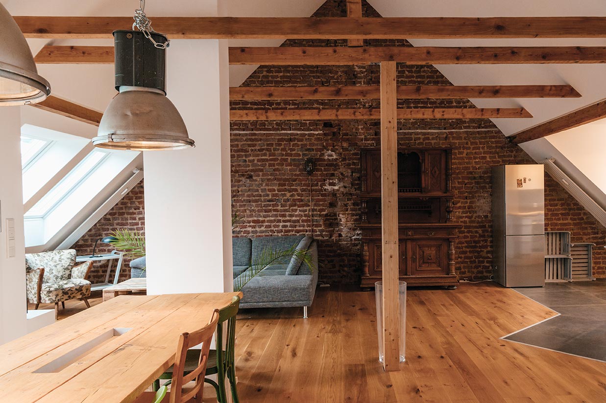 „Solche Böden bringen urbanes Flair in den Raum und sind gleichzeitig pflegeleicht und langlebig“, sagt Holz Löbach in Ruppichteroth.
